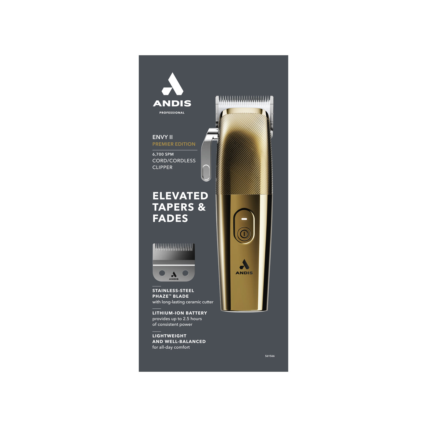 La Envy II Clipper combina potencia y estilo con su acabado dorado y base de carga premium. Su cuchilla Phaze ajustable (0000-0A) y cortador de 28 dientes garantizan cortes, desvanecidos y degradados impecables.